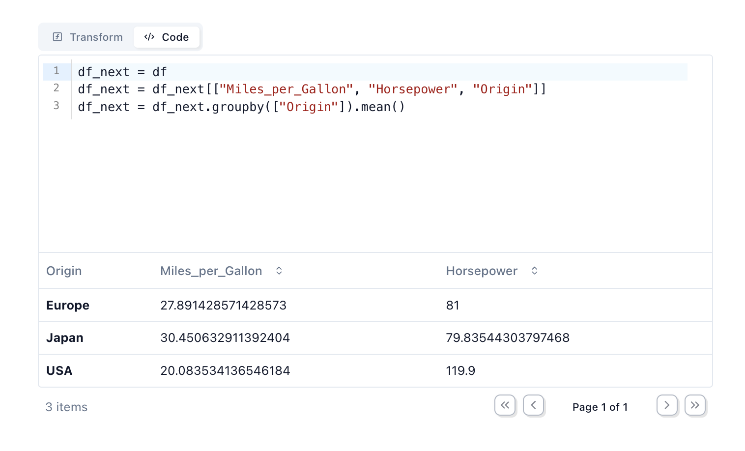transform a dataframe with a GUI, no coding required. When you're done, you